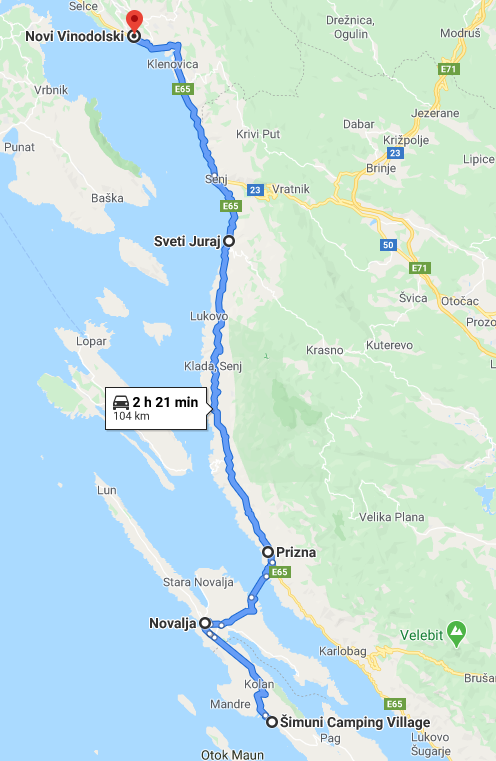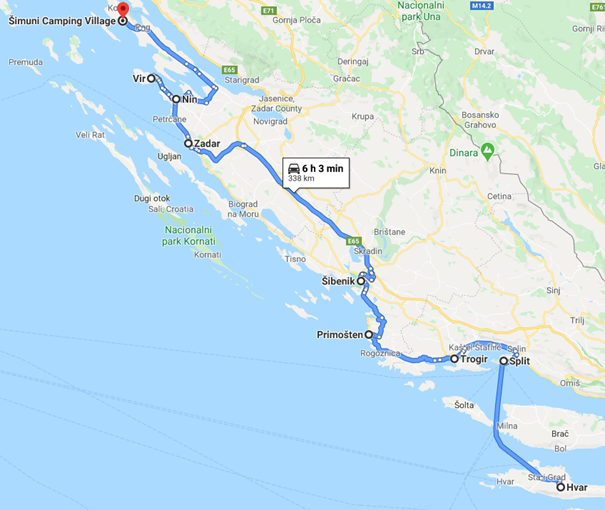 > Šibenik > Zadar > Nin > Vir > Šimuni