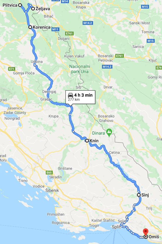 > Knin > Sinj > Omiš (277 km, 4h 3min)